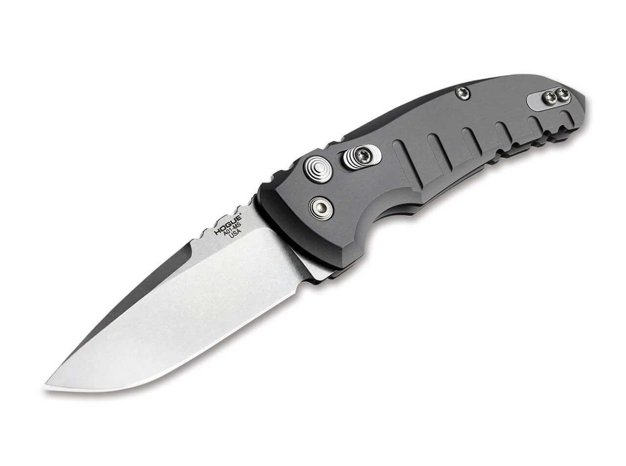 Mit Sicherheit sind Springmesser eine der Kernkompetenzen von Hogue. Und so ist das A01 Microswitch ebenfalls mit einem grundsoliden und absolut zuverlässigen Automatikmechanismus mit Schiebesicherung ausgestattet, der es zu einer echten Freude im Alltag macht. Der Griff aus hochfestem Flugzeugaluminium (6061-T6) liegt trotz der kompakten Größe satt in der Hand. Die Klinge mit Stonewash-Finish besteht aus dem pulvermetallurgischen CPM-154. Mit umsetzbarem Clip (Tip-up/l-r).