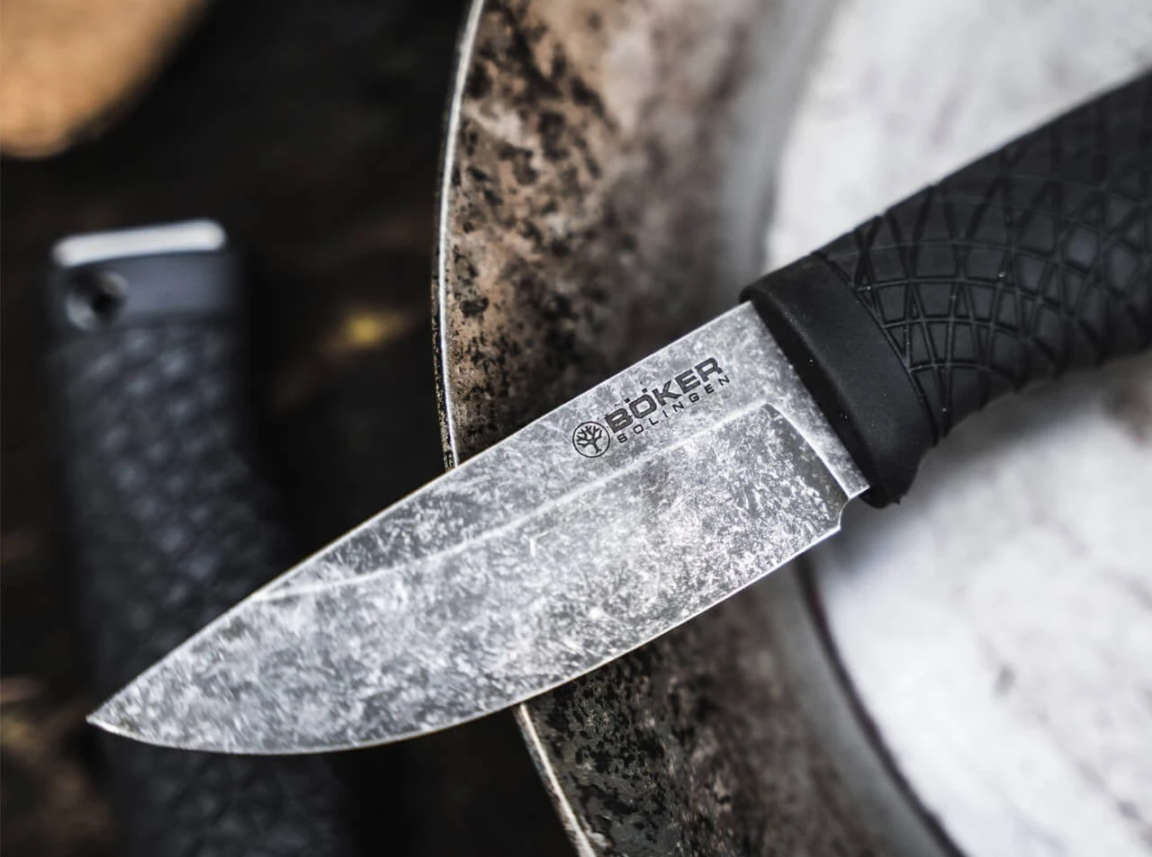 Zuverlässig, bissig und mit ordentlich Outdoor im Blut: Das Böker Bronco Mini steht für ausgewogene Kompaktheit bei maximaler Abenteuerlust. Als kleinere Variante des vielzitierten Böker Bronco schafft das markante Bushcraft-Messer abseits des Alltags unvergessliche Momente, angefangen vom ersten Atemzug im klaren Morgentau bis hin zum knisternden Lagerfeuer inmitten der unberührten Natur. Für die Droppoint-Klinge mit hoch angesetztem Saber-Grind kommt der nicht rostfreie 80CrV2 Stahl zum Einsatz, der Robustheit, Schnitthaltigkeit und Schockelastizität in kompromissloser Weise vereint. Schneiden, schnitzen und sogar hacken bilden die unmissverständliche Komfortzone des Outdoor-Messers. Untermalt wird der Tatendrang durch das kernige Black-Stonewash-Finish der Klinge, welches dem Fahrtenmesser einen unverwechselbaren Used-Look verpasst. Für ein Höchstmaß an Stabilität ist der Erl durchgängig und ragt einige Millimeter aus dem Griffende hinaus, so dass er selbst kräftige Schläge mit einem Rundholz problemlos abkann. Ein kurzer Teil des Klingenrückens bildet beidseitig scharfe 90 Grad Kanten für das Funkenschlagen mit einem optional erhältlichen Feuerstarter. Als Griffmaterial wurde thermoplastisches Elastomer (TPE) gewählt, welches den Erl vollständig umschließt und mit einer griffigen Textur versehen ist. TPE ist widerstandsfähig, elastisch, rutschfest und hat eine geringe Wärmeleitfähigkeit. Das bedeutet: schonende und sichere Handhabung bei perfektem Halt unter allen Witterungs- und Arbeitsbedingungen. Zu seinem natürlichen Rückzugshabitat zählt das Bronco Mini die passgenaue Kydexscheide mit Clip für eine sichere Aufbewahrung. Handgefertigt in der Böker Manufaktur Solingen.