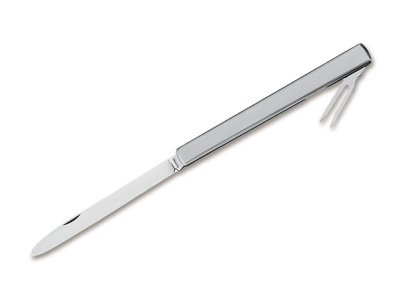 Das klassische Picknick- und Vespermesser bietet nicht nur eine lange Klinge, mit der sich auch größere Wurstscheiben, Äpfel etc. problemlos portionieren lassen, sondern auch eine ausklappbare Gabel für stilvolles Picknicken.