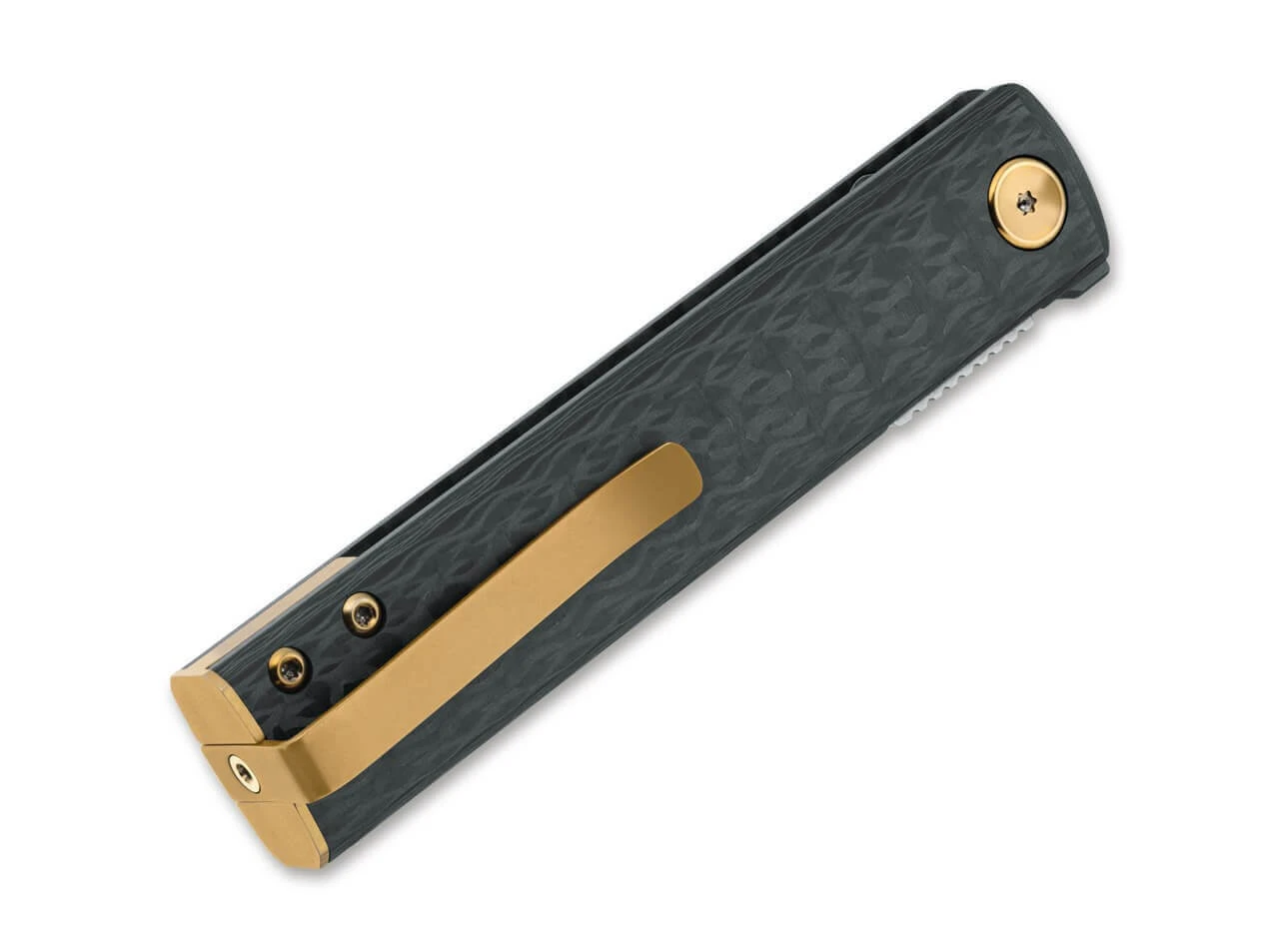 Im Periodensystem der Messerelemente verkörpert das CHNOPS von Fox Knives die Reinform metallischer Schneidstoffe. Das Öffnen der M390-Klinge nach Betätigen des Flippers darf hierbei als chemische Reaktion verstanden werden, die den Folder unter Zugabe des robusten Linerlocks in Verbindung mit dem mit Bronze Partikel versehenen Carbon-Griff zu einem widerstandsfähigen Feststoff umwandelt, der Atomverbindungen täglicher Schneidarbeiten sauber auftrennt. Das chemische Gleichgewicht wird durch den umsetzbaren Clip (Tip-up/r) wieder hergestellt.