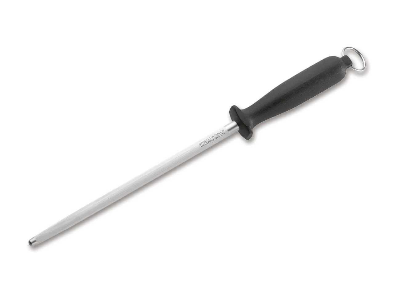 Klassischer 8″ Wetzstahl von Böker Arbolito. Der rutschfeste schwarze Kunststoffgriff liegt sicher in der Hand, die strukturierte Oberfläche des Stahls zieht jede Klinge schnell und unkompliziert ab. Der Schleifstab ist 20,3 cm lang.