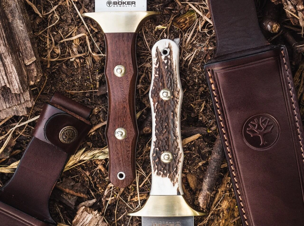 Das Böker Arbolito Colmillo ist als klassischer Hirschfänger mit einer langen Dolchklinge ausgestattet und beeindruckt mit seiner stabilen Vollerl-Konstruktion und seiner beachtlichen Größe selbst erfahrene Jäger. Die beidseitig abgezogene Klinge aus ACX 390 ist mit einem feinen Satin-Finish versehen, der ausladende Handschutz besteht aus Neusilber. Für die ergonomisch geformten Griffschalen kommt echtes Hirschhorn zum Einsatz, das die traditionelle Anmutung des Messers zusätzlich unterstreicht. Mit Fangriemenöse und hochwertiger Gürtelscheide aus braunem Leder.