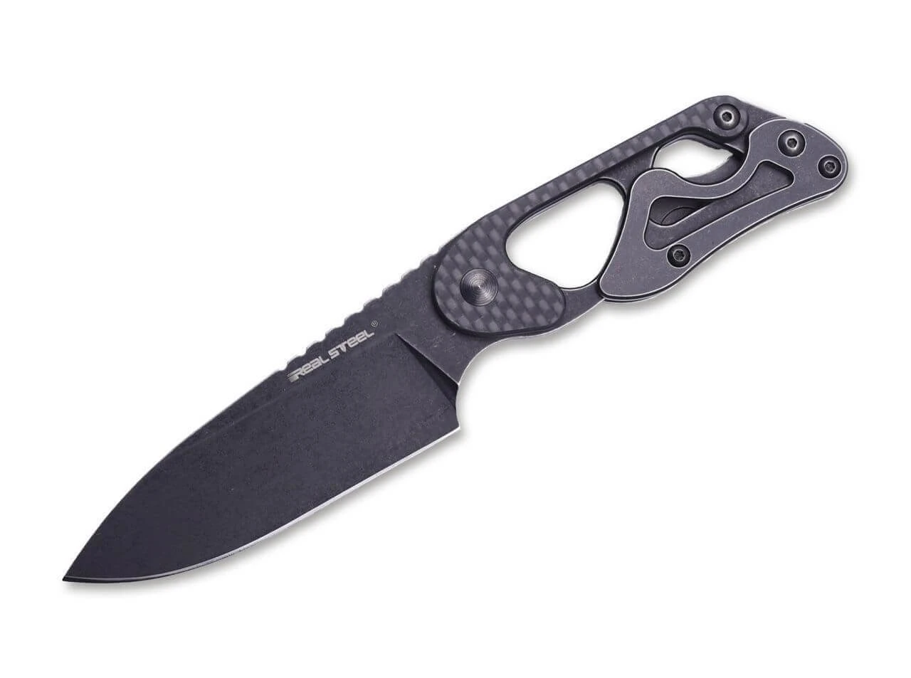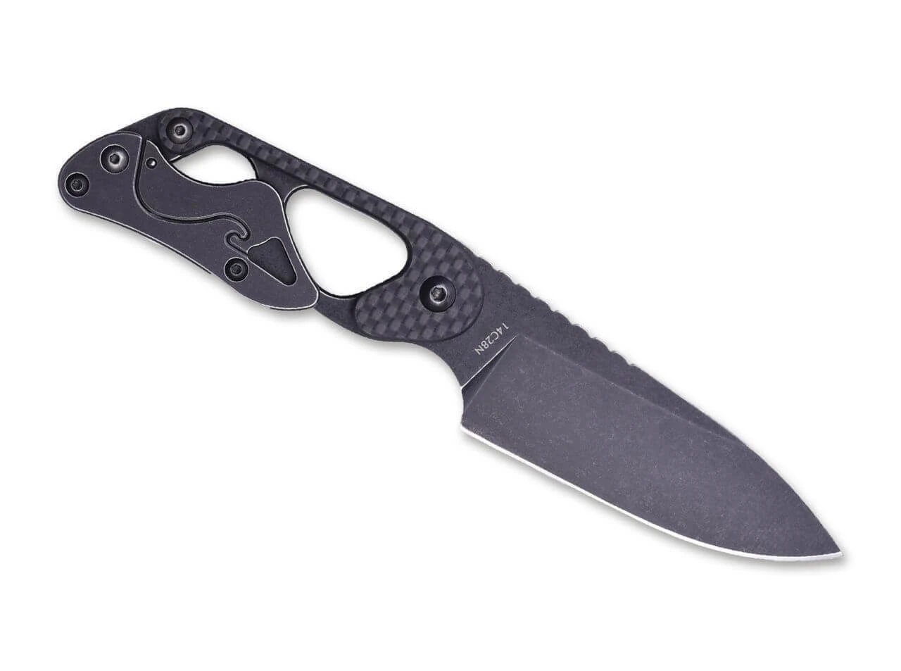 Das weiterentwickelte Cormorant Apex von Real Steel ist ein innovatives feststehendes Messer, das aufgrund des variablen Griffs mit einem breiten Einsatzspektrum glänzt. Das kompakte Messer kann problemlos als leichtes EDC oder auch Neck Knife getragen werden, bietet mit ausgeklappter Verlängerung aber die komfortable Handlage eines deutlich größeren Messers. Gefertigt wird die Ganzstahlkonstruktion mit Blackwash-Finish aus 14C28N, der skelettierte Griff mit Schalen aus Kohlefaser reduziert das Gewicht zusätzlich. Mit orangefarbener Kydex-Scheide.