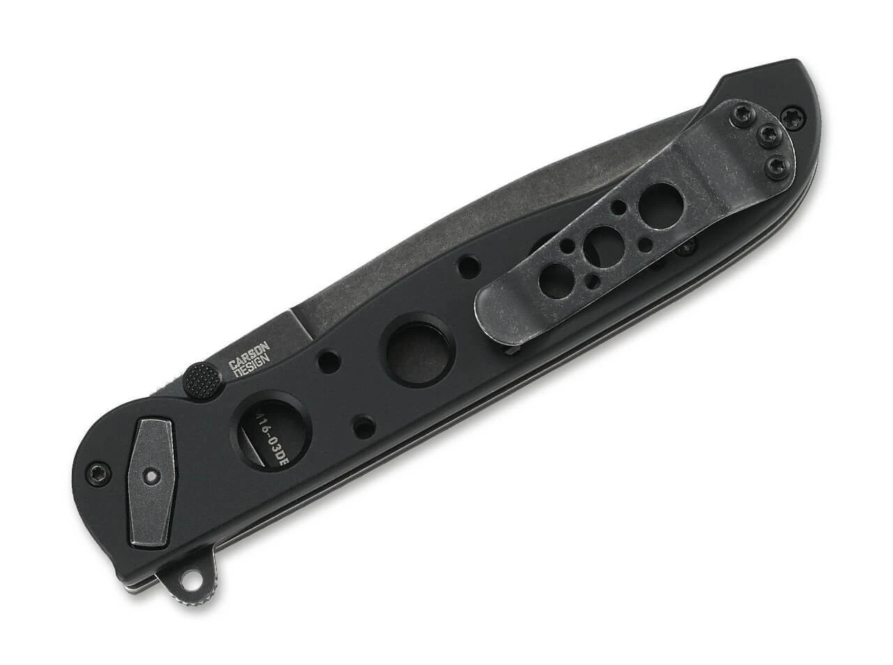 Die M16 Serie gehört bereits seit Jahren zu den beliebtesten Serien von CRKT. Das komplett schwarze M16-03DB mit seinem bewährten taktischen Design stammt von Kit Carson, der seit mehr als 35 Jahren ein Begriff in der Messerwelt ist. Das strapazierfähige Messer ist für den starken und funktionellen Gebrauch entworfen und bei CRKT seit Jahren eine feste Größe im Programm. Der äußerst robuste und schlagfeste Griff aus Aluminium liegt komfortabel in der Hand, während die kugelgelagerte und mit einer Fehlschärfe versehenen Droppoint Klinge aus D2 federunterstützt per Flipper öffnet und über den Deadbolt Lock arretiert wird. Mit umsetzbarem Clip (Tip-up/l+r)