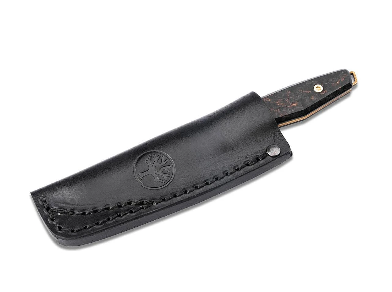 Das in Kooperation mit dem jungen Messermacher Alex Kremer und Daily Customs entstandene Böker Daily Knives AK1 ist ein vielseitiges kleines Alltagsmesser, das sich perfekt an die eigenen Bedürfnisse anpassen lässt. Der 1993 in Fulda geborene Alex Kremer begann bereits als 18-jähriger Schüler mit der Fertigung erster Messer, wobei ihm bis heute insbesondere seine zahlreichen Touren durch die schier endlosen Weiten Skandinaviens als Inspirationsquelle dienen. In dieser exklusiven und weltweit auf 50 Exemplare streng limitierten Version ist das AK1 mit einer von Chad Nichols handgeschmiedeten, goldfarbenen Reverse-Tanto-Klinge aus Damast im Muster „Boomerang“ ausgestattet. Die ergonomisch geformten und angenehm in der Hand liegenden Griffschalen werden aus erlesenem, dunklem Maserbirkenholz gefertigt, dessen einzigartige Struktur einen harmonischen Einklang mit der Klinge bildet. Zusätzlich lässt sich die aufwendig gefertigte Fangriemenöse am Griffende bei demontierten Griffschalen herumdrehen, sodass sie im Griff verschwindet. Sie wird wie der komplette Vollerl bei minimalen Fertigungstoleranzen aus Damast gefertigt. So kann das Messer in kürzester Zeit an die eigenen Anforderungen angepasst und situationsabhängig verändert werden. Lieferung mit hochwertiger Lederscheide, die mit einem eingenähten Ulticlip versehen ist und dank der arretierenden Federklammer bequem am Taschensaum befestigt werden kann. So lässt sich das AK1 mühelos ziehen, während die Scheide vom Ulticlip zuverlässig an Ort und Stelle gehalten wird. Handgefertigt in der Böker Messer-Manufaktur Solingen.
