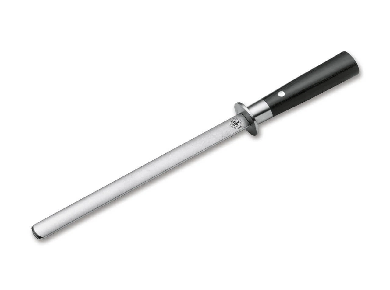 Der Böker Black Schleifstab besticht durch zeitlose Eleganz. Als Griffmaterial kommt heimisches schwarzes heimischen Schichtholz zum Einsatz, welches aufgrund seiner wunderschönen und edlen Farbe die fein mattierten Edelstahlzwingen zusätzlich betont. Die Bauweise des Griffs gibt dem Schleifstab seinen besonderen Charakter.