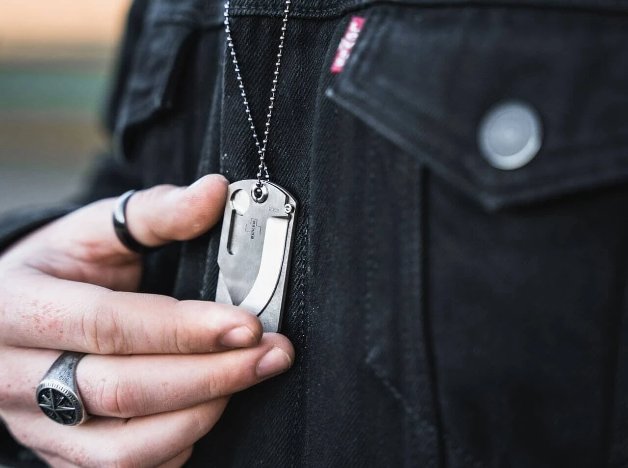 Für maximale Sicherheit beim Tragen und beim Nutzen trägt der einseitige Chisel Grind der Klinge bei, der die flache Rückseite der Schneide engstmöglich an der Titanplatine anliegen lässt. Zudem sichert ein durchdachter Magnetmechanismus das Neck Knife sowohl in geschlossenem wie auch in geöffnetem Zustand. Die Verriegelung basiert dabei nicht auf reiner Magnetkraft, sondern auf einer echten Arretierung. So ist ein versehentliches Öffnen auch bei sportlich-dynamischer Aktivität ausgeschlossen. Die Rückseite der Titanplatine eignet sich perfekt für eine Lasergravur des Namens, Spitznamens oder auch von medizinischen Daten und anderen Informationen. Mit schwarzer Kugelkette.