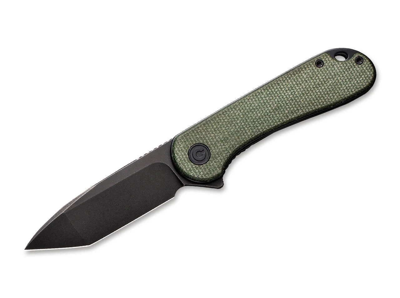 Das schlichte Elementum von CIVIVI ist mit Griffschalen aus grünem Micarta und einer Tanto Klinge aus korrosionsbeständigem D2 ausgestattet. Das robuste Auftreten, die Zuverlässigkeit und nicht zuletzt das ausgezeichnete Preis-Leistungs-Verhältnis machen das Elementum zu einer ausgezeichneten Wahl für den Alltag. Die Klinge lässt sich dank des Flippers unkompliziert öffnen und verriegelt per Linerlock. Mit Deep-Carry-Clip und Fangriemenöse (Tip-down).