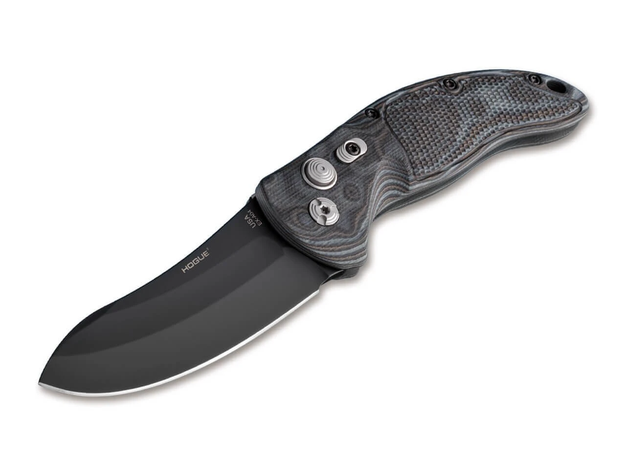 Das von Hogue gefertigte EX-A04 überzeugt als taktisches Einsatzmesser besonders durch die stabile Konstruktion und seine geschwungene Form. Die zusätzliche Schiebesicherung erhöht die Sicherheit deutlich. Die Griffschalen bestehen aus rutschfestem G10, die beschichtete Klinge wird aus 154CM gefertigt. Mit Clip (Tip-down).