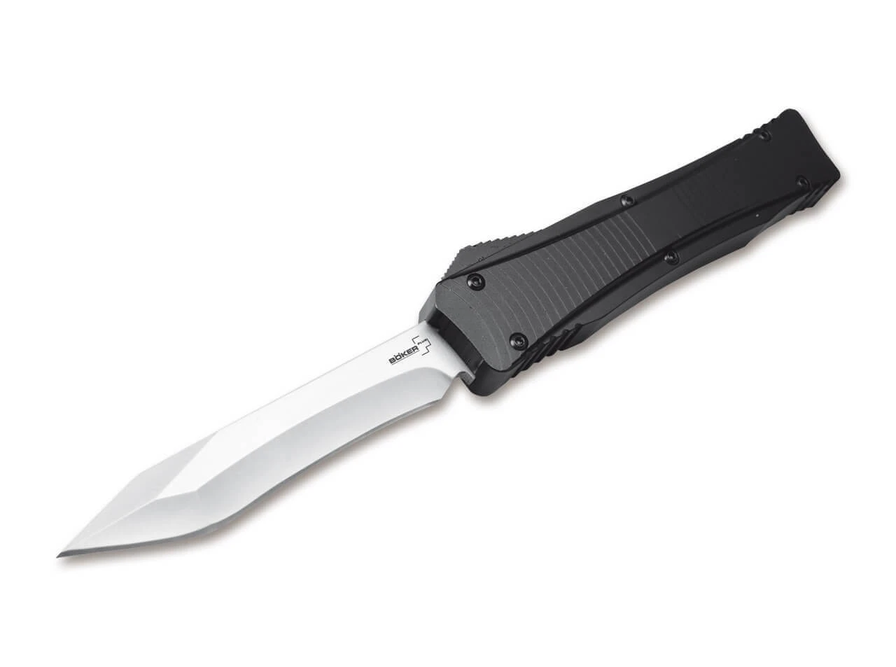 Das Böker Plus OTF-Springmesser nach dem Design von Raimund Lhotak liegt durch die Strukturierung des titanbeschichteten Griffes und das ergonomische Design ausgezeichnet in der Hand. Die zuverlässige Mechanik öffnet und schließt die Klinge per Federkraft über den Auslöseschieber, wodurch eine schnelle Bedienung gewährleistet ist. Die atemberaubenden dynamischen Schlifflinien und das Two-Tone Finish machen das Messer auch zu einem exquisiten Sammlerstück. Mit Reverse Tanto-Klinge.