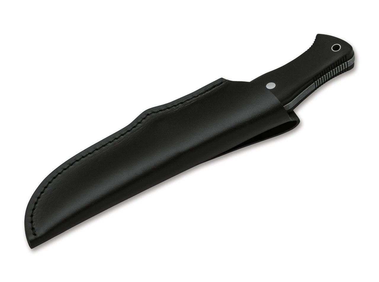 Péter Farkas aus Ungarn hat uns schon mit einigen seiner Entwürfe überzeugt, insbesondere die ausgezeichnete Ergonomie seiner Griffe begeistert immer wieder. Das robuste Böker Plus Farkas Bushcraft mit massiver Klingenstärke macht hier keine Ausnahme und begeistert als kräftiges, aber kompaktes Outdoormesser für alle Gelegenheiten. Die Riffelungen an den entscheidenden Stellen im Erl fördern den sicheren Grip genauso wie das schwalbenschwanzartige Griffende, und so bietet der Griff auch großen Händen eine ausgezeichnete Handlage. Die Klinge wird aus D2 gefertigt und ist mit einem Stonewash-Finish und balligen Schliff versehen. Lieferung mit Leder-Köcherscheide.