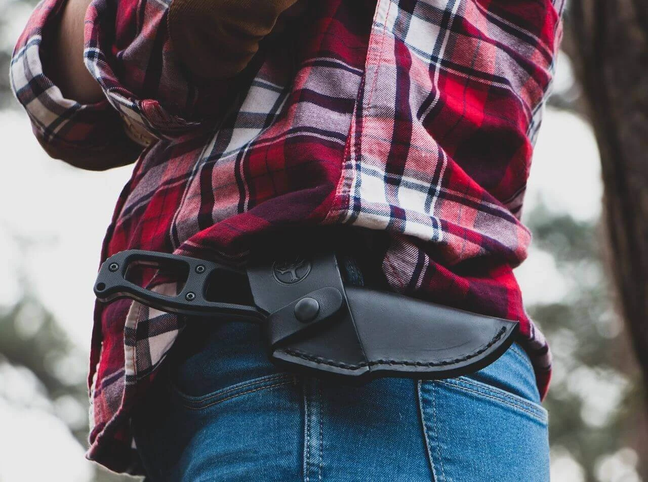 Die im Lieferumfang enthaltene hochwertige schwarze Lederscheide ist ebenfalls beidseitig ausgeführt, und Lennartz-typisch diagonal zu tragen. Auch hier ist der Druckknopfriegel links- wie rechtsseitig bedienbar, so dass das Messer bei jeder Trageweise sicher und intuitiv gehandhabt werden kann. Ein echter Alleskönner, ebenso vielseitig wie stabil, und dennoch durch sein moderates Gewicht und das ausgeklügelte Scheidendesign komfortabel tragbar.