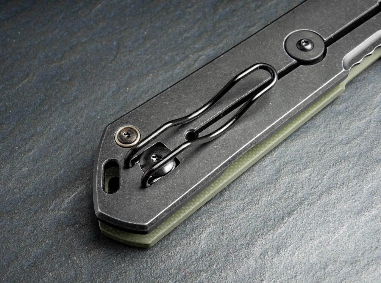 Mit dem Entwurf des Böker Plus Kihon Assisted OD Green verkörpert der amerikanische Custom-Messermacher Lucas Burnley die Idee des japanischen Kihon. Der Begriff umfasst ursprünglich die Grundlagen und Basistechniken japanischer Kampfkünste, die Burnley im soliden Alltagsmesser bodenständig umsetzt. Ausstattung und das geradlinige Design zeugen von einer hohen Praxistauglichkeit und verleihen dem Messer eine ideale Basis für die alltäglichen Schneidarbeiten. Die kugelgelagerte Harpoon-Klinge aus D2 ist mit einem dunklen Stonewash-Finish versehen und öffnet federunterstützt per Flipper oder Daumenpin. Der ebenfalls mit einem dunklen Stonewash-Finish versehene Edelstahl–Framelock sichert die Klinge zuverlässig und ist zudem mit einem Hinderer Lock-Stop ausgestattet. Der rutschsichere Griff ist auf der Vorderseite mit texturiertem G10 beschalt und liegt angenehm in der Hand. Goldfarben anodisierte Ringe um die Klingenachsschraube und die Griffschraube setzten dekorative Akzente. Mit Fangriemenöse, Clip (Tip-up/r), und hochwertigem Nylon-Etui zur Aufbewahrung.
