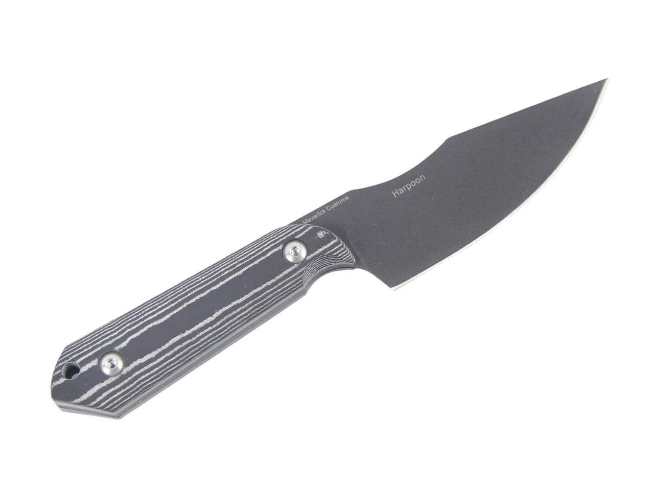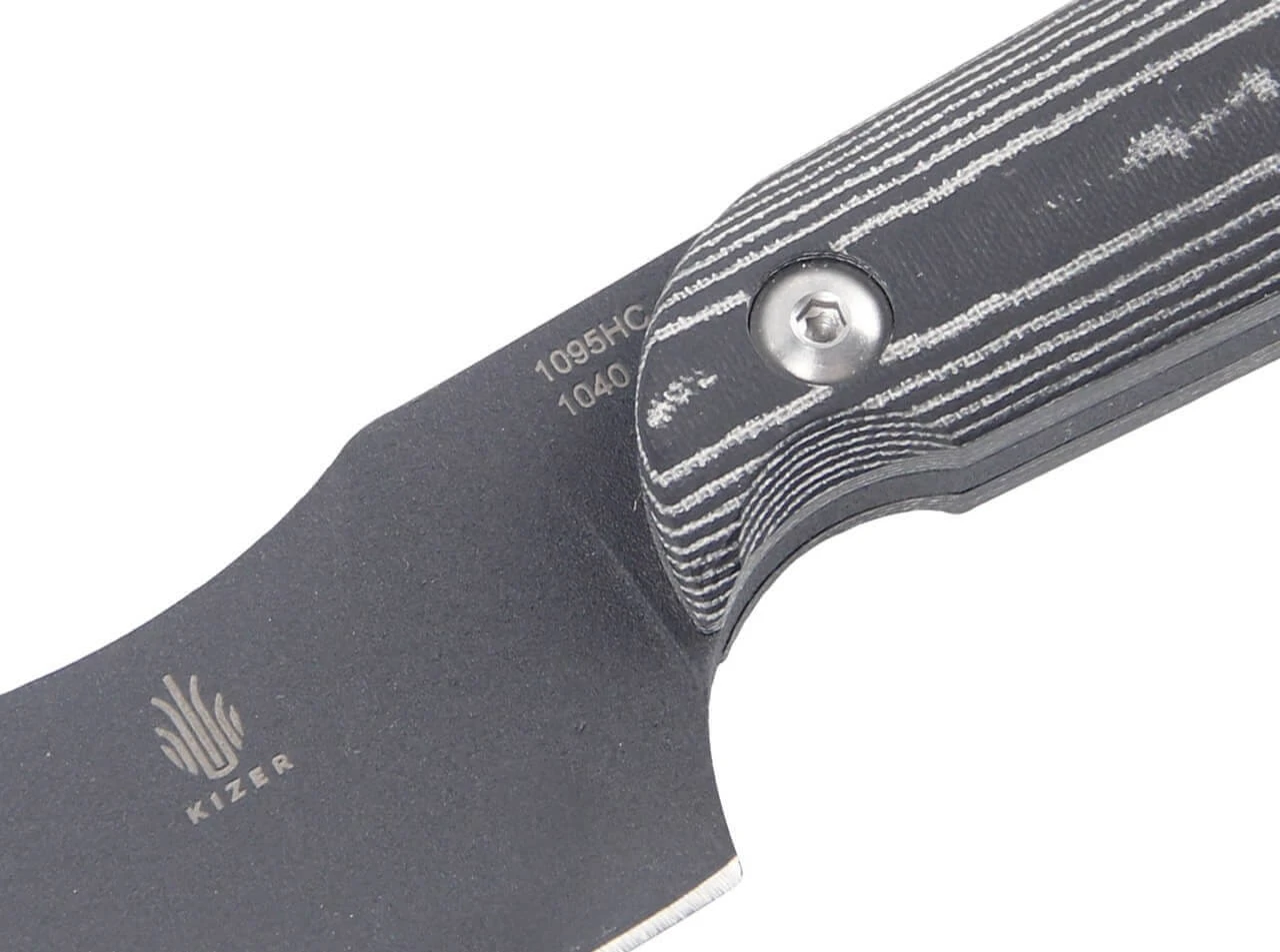 Das Harpoon von Kizer entstand in Zusammenarbeit mit James Buckley von Maverick Customs, der bekannt ist für seine relativ preisgünstigen und langlebigen feststehenden Messer. Besonders auffallend ist die große tropfenförmige Klinge aus D2, die die Proportionen und Geometrie westlicher Kochmesser fast kannibalisiert. Eine Fingermulde im Klingenrücken bietet dem Anwender einen Platz, an dem der Finger zur Führung bei Schneidaufgaben angelegt werden kann. Die Vollerl-Bauweise verleiht zusätzliche Stabilität und Belastbarkeit, die Griffschalen bestehen aus rutschfestem Micarta. Mit Fangriemenöse und Kydexscheide.