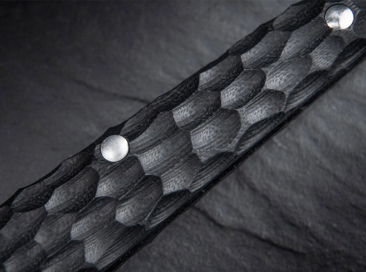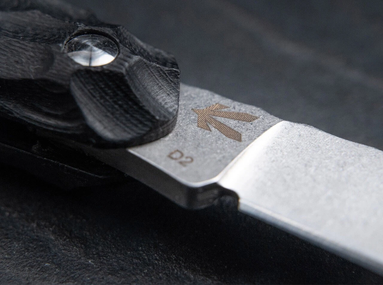 Dem ukrainischen Messermacher Alexander Krava gelingt es in seinen Entwürfen vortrefflich, Form und Funktion auf höchstem Niveau zu vereinen. Angelehnt an Koteyka, einem unter Kennern der Computerszene nicht ganz ernst gemeinter Virus mit einer Katze als Gallionsfigur, entwarf der Designer das gleichnamige Slipjoint-Messer. Dreidimensional gefräste G10 Griffschalen sorgen mit samtpfotiger Tatzen-Struktur bis zum Klingenrücken für unvergleichlichen Halt, während die D2 Klinge mit Stonewash-Finish in Lauerstellung liegt und erst mit einem leisen Schnurren des Nagelhaus auf ihre Beute aus alltäglichen Schneidarbeiten losgelassen wird. Auch ohne Verriegelungsmechanismus wird die Klinge sicher von der straffen Feder gehalten. Ohne Clip und ohne Fangriemenöse, dafür mit viel geheimnisvoller Eleganz.