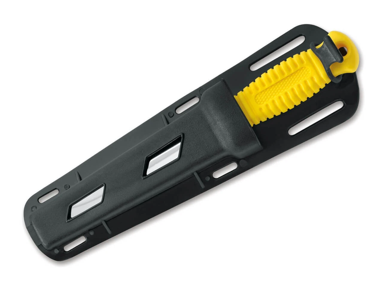 Das professionelle Tauchermesser Sub 15 D von MAC ist mit einer Dolchklinge aus 4116 ausgestattet, die zusätzlich über einen bissigen Wellenschliff verfügt. Der gelbe Griff aus rutschfestem Polypropylen liegt auch unter Wasser sicher in der Hand. Lieferung mit PE-Scheide mit Gummibändern für Beine oder Arme.