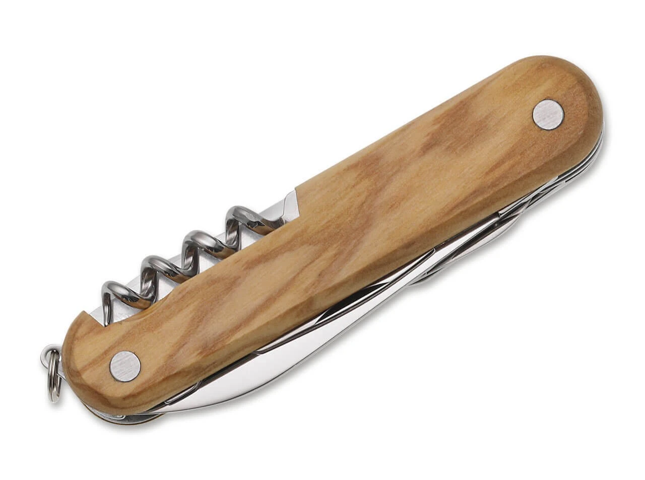 Das Mercury 913-7LC setzt auf Understatement und punktet mit seiner eleganten Schlichtheit. Das klassische Messer öffnet die Klinge aus 420 per Nagelhau und verriegelt nicht. Korkenzieher, Kapselheber, Dosenöffner, Ahle, Gabel und Schere machen das Slipjoint Messer zu einem unverzichten Begleiter für den Alltag. Guten Halt versprechen die balligen Griffschalen aus Olivenholz. Mit Fangriemenöse.
