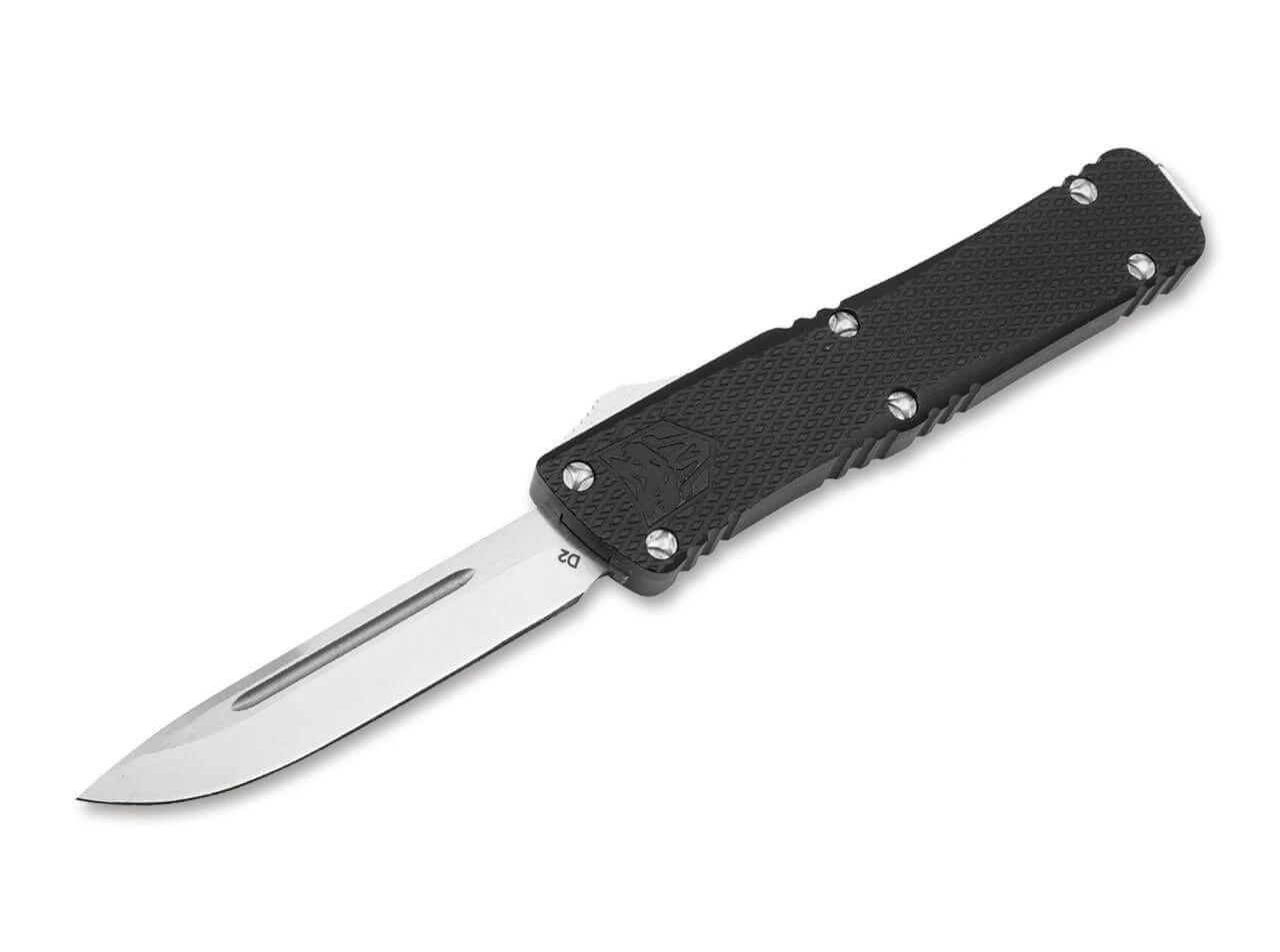 Das CobraTec Mini Mamba ist ein extrem leichtgewichtiges, kleines OTF-Messer mit einer satinierten Droppoint-Klinge aus D2. Der texturierte Griffkörper wird aus leichtgewichtigem Aluminium gefertigt und liegt auch bei Nässe stets sicher in der Hand. Mit umsetzbarem Clip (Tip-down/l-r) und praktischem Gürteletui aus Nylon.
