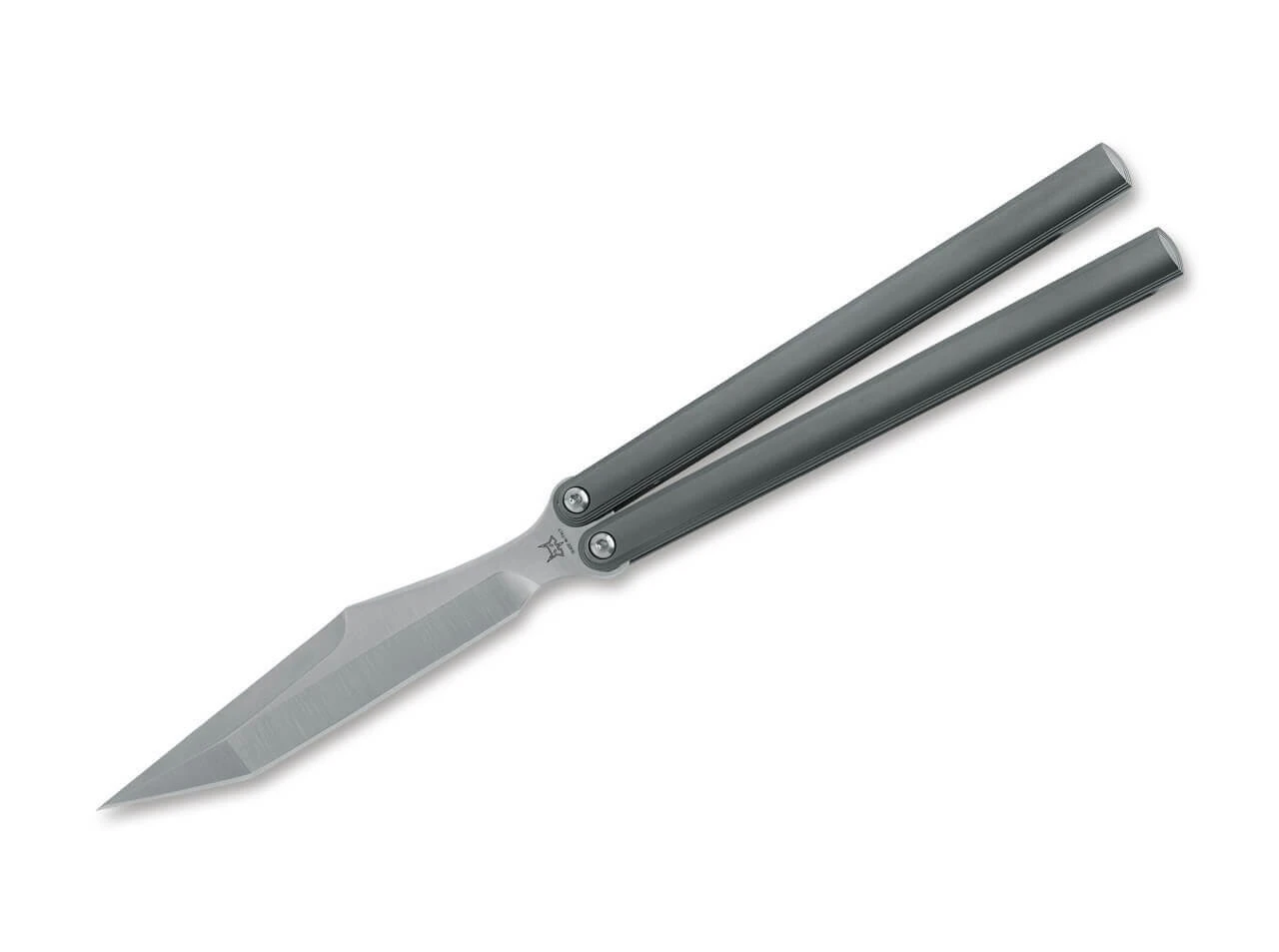 Das Fox PHI greift die Wurzeln der philippinischen Balisong Messer auf und erhält durch Designer Vincenzo Fiore eine moderne Interpretation. Typisch für diese auch „Butterfly“ genannten Messer sind die um 180° schwenkbaren Griffhälften, die beim Fox PHI aus grauem Titan bestehen im Sinne einer ausgewogene Gewichtsverteilung nicht über die üblichen kreisförmigen Aussparungen verfügen. Für ein aufgeräumtes Bild sorgt zudem das Fehlen des sonst üblichen Sicherungsstifts am Griffende, wodurch das Messer elegant schlank ausfällt. Bei der Klinge setzt das PHI auf den bewährten M390 Klingenstahl, der dank hoher Verschleißfestigkeit und Zähigkeit äußerste Zuverlässigkeit beim Schneiden verspricht.