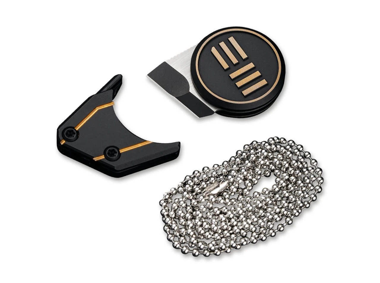 Mit dem WE Knife Quark ist Messerdesigner Ostap Hel ein wahrer Quantensprung gelungen. Denn das Neck Knife darf zurecht als eines der kleinsten Elementarteilchen im Messeruniversum bezeichnet werden. Durch die perfekte Anordnung von Atomen, Protonen und Neutronen wird ein Alltagsmesser mit M390 Klinge und rundem Titangrff mit goldenen Verzierelementen geformt, während das passende Antiteilchen einen perfekten Klingenschutz für den Transport darstellt.