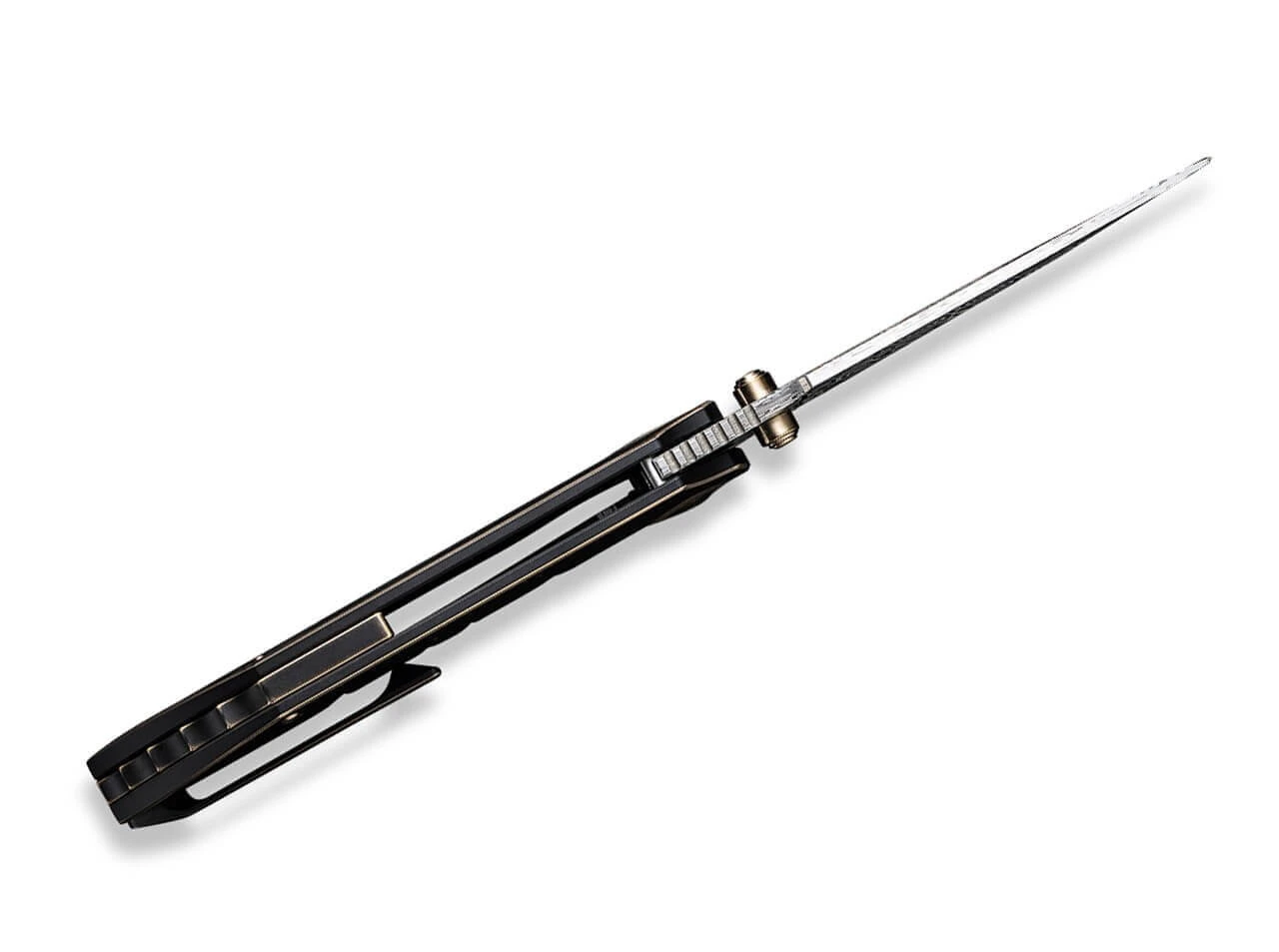 Entgegen seinem Namen erweist sich das WE Knife Riff-Raff als zuverlässiges Taschenmesser mit guten Manieren und ausgezeichneter Ausstattung. Immer zur Stelle ist die kugelgelagerte Clippoint-Klinge aus mystischem Heimskringla Damast von Damasteel, die per Daumenpin öffnet und ihrem atemberaubendem Muster hervorragend mit dem schwarzen Titangriff mit bronzefarbenen Konturen harmoniert. Jimpings am Klingenrücken erhöhen die Arbeitssicherheit des Frame Lock Folders, während die ebenfalls in Bronze gehaltenen Schrauben den glamourösen Auftritt abrunden. Mit Tip-Up Clip (r).
