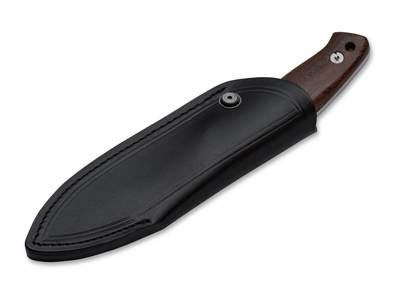 Nicht nur die Taschenmesser von Lucas Burnley sind ungemein gefragt, auch im Bereich der feststehenden Messer baut er seit Jahren erfolgreich die unterschiedlichsten Modelle. Das Böker Arbolito Scorpion ist ein exklusiver Entwurf für unsere Messer-Manufaktur in Buenos Aires und begeistert auf Anhieb. Der schön ausgeformte Griff aus Guayacan liegt perfekt in der Hand und die breite, blattförmige Recurve-Klinge meistert alle anfallenden Schneidaufgaben. Eine geriffelte Daumenrampe und der einwärts geschwungene Klingenrücken gewährleisten eine exzellente Kraftübertragung bei verschiedenen Handhaltungen. Als Klingenstahl kommt Böhler N695 zum Einsatz, der durch Schnitthaltigkeit und Korrosionsbeständigkeit überzeugt. So ist das Scorpion in der Summe seiner Eigenschaften als Begleiter im Alltag, im Outdoorleben oder im Einsatz voll in seinem Element. Mit hochwertiger Lederscheide.