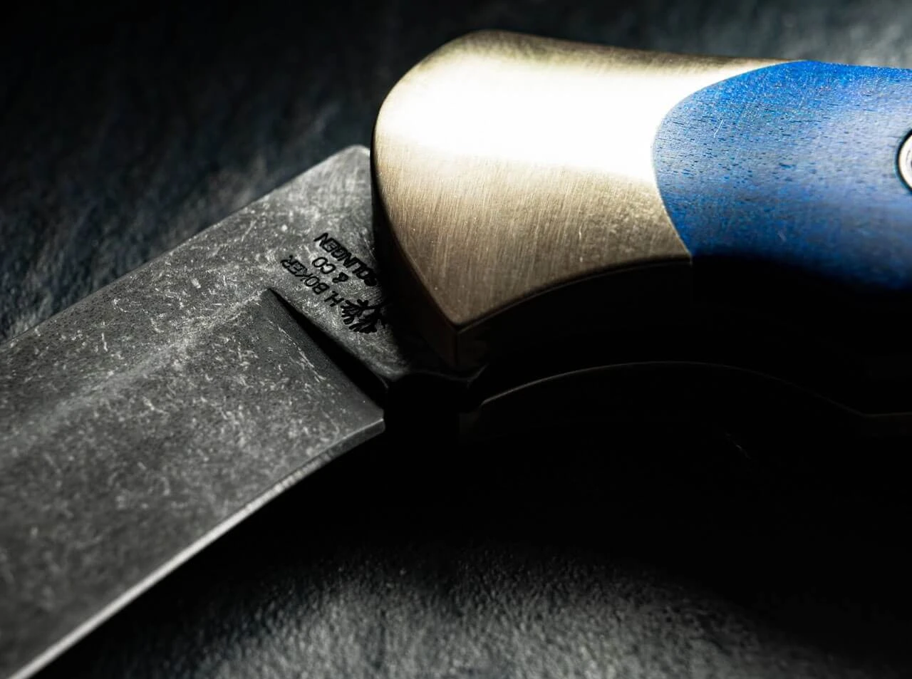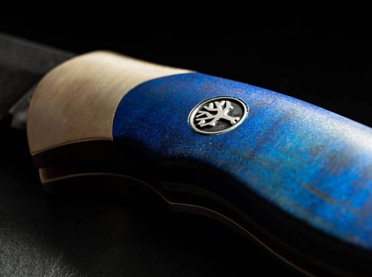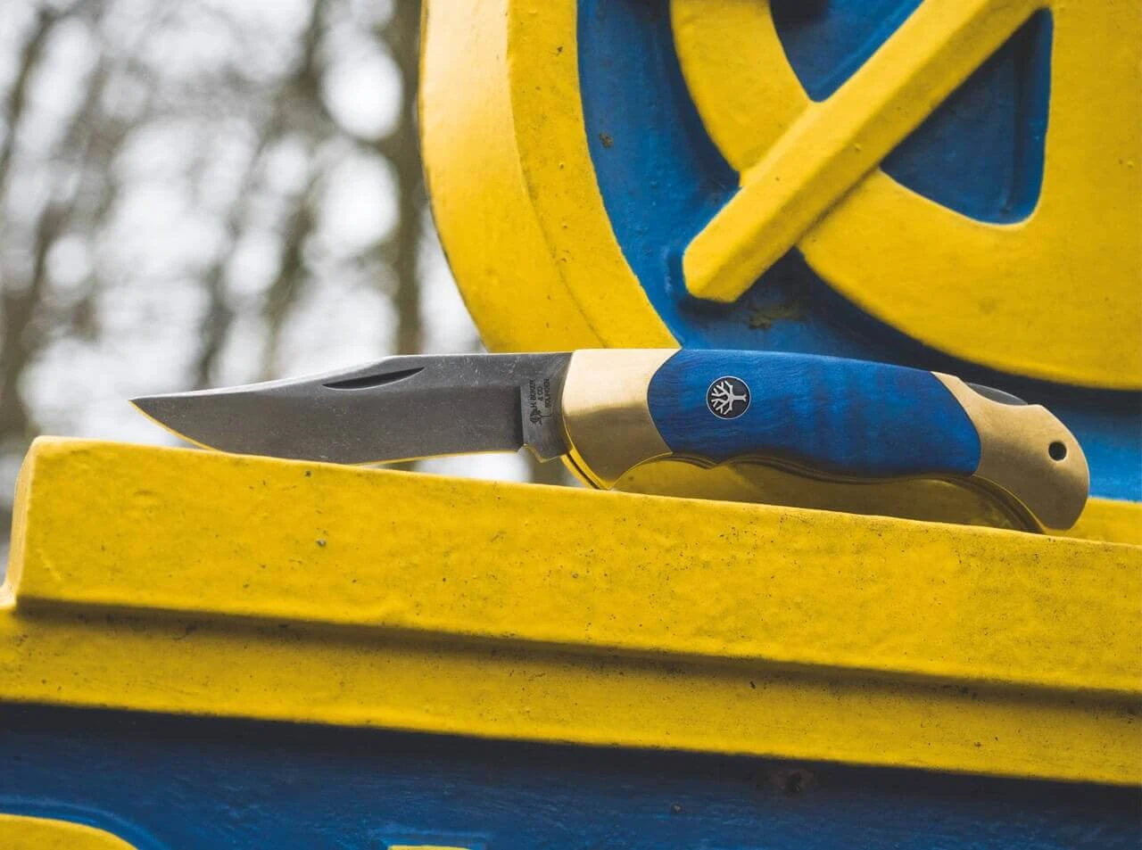 Seit über dreißig Jahren überzeugt das Scout mit seiner eleganten und zeitlosen Formgebung sowie seiner stabilen und ergonomischen Bauweise mit gesintertem Griffkörper Messerfreunde auf der ganzen Welt. Die Farben der Stadt Solingen sind ein kräftiges Stahlblau und Goldgelb. Statt mit einem gesinterten Körper aus Neusilber wird das Scout Solingen erstmalig mit einem Körper aus massivem Messing ausgestattet, der präzise per CNC-Technik aus dem Vollen gefräst wird. In Anlehnung an den gewaltigen Kastanienbaum vor der ersten Böker Handwerkzeug-Fabrik, haben wir uns für Griffschalen aus blau stabilisiertem Holz der Rosskastanie entschieden. Um die jahrhundertealte Tradition der Klingenstadt Solingen zu betonen, wird die Klinge aus rostträgem D2 mit einem authentischen Acid Wash Finish versehen. Die Auslieferung des komplett von Hand in der Böker Manufaktur Solingen gefertigten Messers erfolgt mit dem neu aufgelegten historischen Böker Baumzeichen-Emblem.