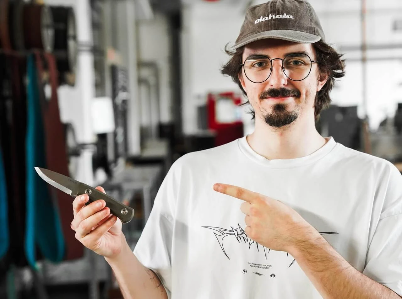 Zwei Streamer in der Wildnis? Messer statt Controller? Hungern statt Happy Slice Pizza? Klingt absurd, wird aber wahr: Der Hamburger Trymacs (29) und der Bonner Rumathra (27) treten als Team gemeinsam bei der kommenden Staffel von 7 vs. Wild an und stellen sich dem 14-tägigen Abenteuer in der Wildnis Kanadas. Die beiden Schwergewichte aus der deutschen Streaming-/Gaming Szene vereinen gemeinsam über 4 Millionen Follower auf Twitch (Trymacs 3,4 Mio., Rumathra 0,7 Mio.) und sind auch auf YouTube und Instagram reichweitenstark vertreten. Im Rahmen der intensiven Vorbereitung auf diese Grenzerfahrung spielte die Wahl der richtigen Ausrüstung – insbesondere, weil alle Gegenstände zusammen in einer 1L Nalgene- Flasche untergebracht werden müssen – eine elementare Rolle für die Beiden. Gemeinsam mit Rumathra, der uns mehrfach in unserer Solinger Manufaktur besuchte, entwickelten und bauten wir ein eigenes Messer, welches perfekt auf die Anforderungen und Gegebenheiten des anstehenden Outdoor- Abenteuers abgestimmt ist. Basis für die Neuentwicklung ist das von Dave Wenger entworfene Outdoor- und Bushcraft Messer Böker Plus Vigtig, welches aufgrund seiner Dimensionen (Gesamtlänge: 19,7 cm; Klingenstärke: 4 mm) nicht nur perfekt in die Flasche passte, sondern auf härteste Beanspruchungen ausgelegt ist. Die Wahl des Klingenstahls fiel auf Magnacut, der anders als die üblicherweise verwendeten Werkzeugstähle speziell für den Messerbau entwickelt wurde. Bei diesem als „Wunderstahl“ gefeierten Stahl ist es gelungen trotz des hohen Chromgehaltes von 10,7% und einer beeindruckenden Härtbarkeit von über 62-63 HRC ein sehr feines Gefüge und damit hohe Zähigkeit und Schocklastverträglichkeit zu erzielen. In Kombination mit dem True-Scandi Schliff trotzt die Klinge im Stonewash-Finish jeder anfallenden Herausforderung: von feinen Schneid- und Schnitzaufgaben zum Lagerbau und der Feuerholz-Vorbereitung, über Batoning und Hacken bis hin zur Wildversorgung. Um den Platz in der Nalgene Flasche optimal auszunutzen, wurden die beiden Griffschalen aus grünem Canvas Micarta etwas flacher gehalten als bei der Ursprungsversion und gewährleisten auch im nassen Zustand eine perfekte Handlage. Ein besonderes Highlight befindet sich im Inneren des Griffs. Anstelle von Hohlnieten lassen sich die beiden großen Schrauben mithilfe einer Münze einfach demontieren; zum Vorschein kommt ein gemessen an den Außendimensionen des Griffs üppiges Fach mit einer Tiefe von 14 mm, indem beispielsweise eine Pinzette, Zunder, Kohletabletten, ein Angelset und Sicherheitsnadeln problemlos untergebracht werden können. Auch als skelettiertes Messer ohne Griffschalen macht das vollständig in Solingen gefertigte Böker Vigtig vs. Wild eine gute Figur und unterstreicht die Vielseitigkeit des Sondermodells. Abgerundet wird der Lieferumgang durch eine kompakte Kydexscheide in schwarz mit Clip.
