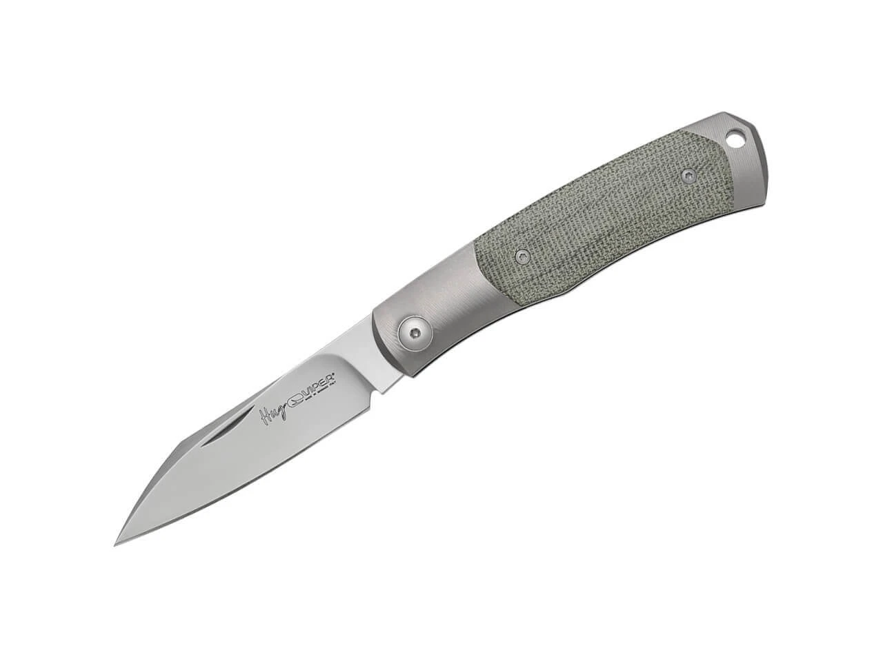 Einfach zum Liebhaben – das Viper Hug ist ein hochwertiges Slipjoint-Messer mit der richtigen Mischung aus modischem Chic und einer cleveren Materialwahl. Die Sheepfoot-Klinge aus M390 öffnet klassisch per Nagelhau und verriegelt nicht. Geborgenheit findet sie im mit zwei Backen versehenen Griff aus Titan samt grüner Micarta Schalen, der auch bei schwierigen Arbeiten sicher in der Hand liegt. Mit Fangriemenöse.