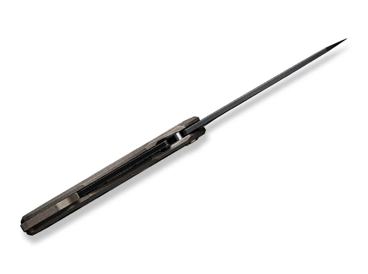 Das Vision R entstand aus einer visionären Idee von We Knife und Snecx Tan heraus, die nun stahlgewordene Realität geworden ist. Das avantgardistische EDC Messer ist mit einer kugelgelagerten Reverse Tanto Klinge aus pulvermetallurgischem CPM-20CV ausgestattet, die über hervorragende Schneidfähigkeiten verfügt. Neben den gewichtsreduzierenden Löchern im bronzefarbenen Titangriff setzt die großzügige Daumenöffnung die Erscheinung des futuristischen Messers stimmig fort. Gesichert wird die Klinge durch den Superlock Mechanismus, der beim Zurückziehen des Hebels am Klingenrücken das Messer wieder entriegelt. Mit Tip-Up Clip.