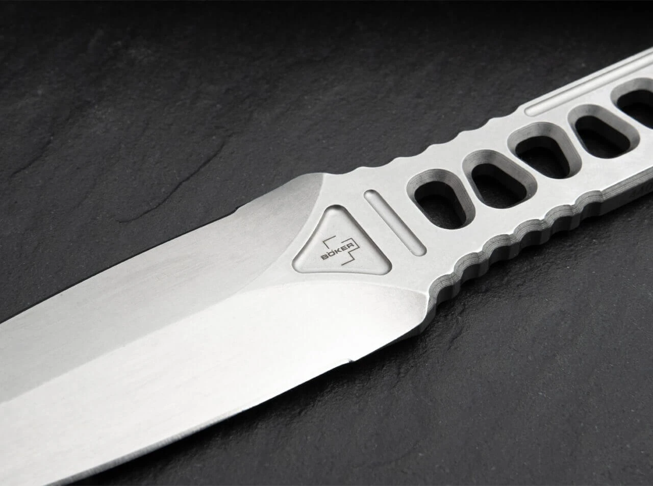 Der leichtgewichtige Böker Plus Voodoo ist mit einer beidseitig abgezogenen Dolchklinge aus 440C ausgestattet und überzeugt als zuverlässiges Einsatzmesser sowohl im Feld als auch im Alltag. Die für Peter Fegan charakteristische Skelettbauweise verleiht dem Messer eine taktische Anmutung und verringert gleichzeitig das Gewicht der robusten Ganzstahlkonstruktion, die mit einem dezenten Stonewash-Finish versehen ist. Der große Griffring gewährleistet im Zusammenspiel mit den ausgeprägten Riffelungen in den relevanten Bereichen ein geradezu spektakuläres Handling. Getragen wird der Dolch in der im Lieferumfang enthaltenen Kydexscheide samt Gürteladapter, wobei die schlanke Bauweise und das geringe Gewicht auch einen Einsatz als großes Neck Knife denkbar machen.