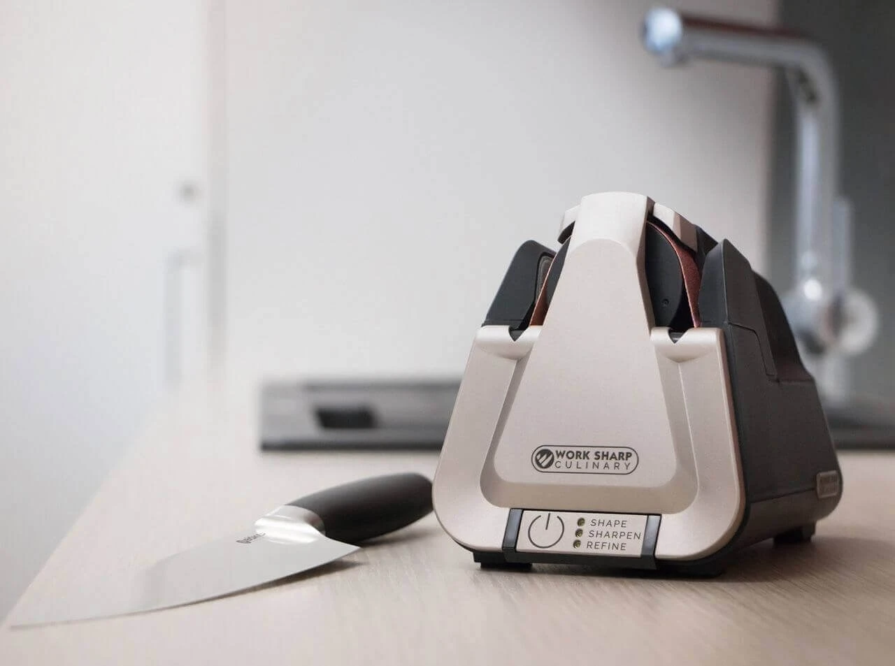 Der Work Sharp Culinary E5 hebt das Schärfen von Küchenmessern auf ein neues Level. Die extrem einfache Handhabung wird nicht nur durch die Winkelführungen des Geräts gewährleistet, sondern auch durch die timergesteuerten Schärfintervalle sowie die unterschiedlichen Geschwindigkeiten der integrierten Schleifbänder. Zudem sorgt die automatische und komplett wartungsfreie eingebaute Schleifstaubabsaugung und das leise Arbeitsgeräusch für ein sauberes und ruhiges Arbeiten, so dass der Küchentresen nicht zur Werkbank mutiert.