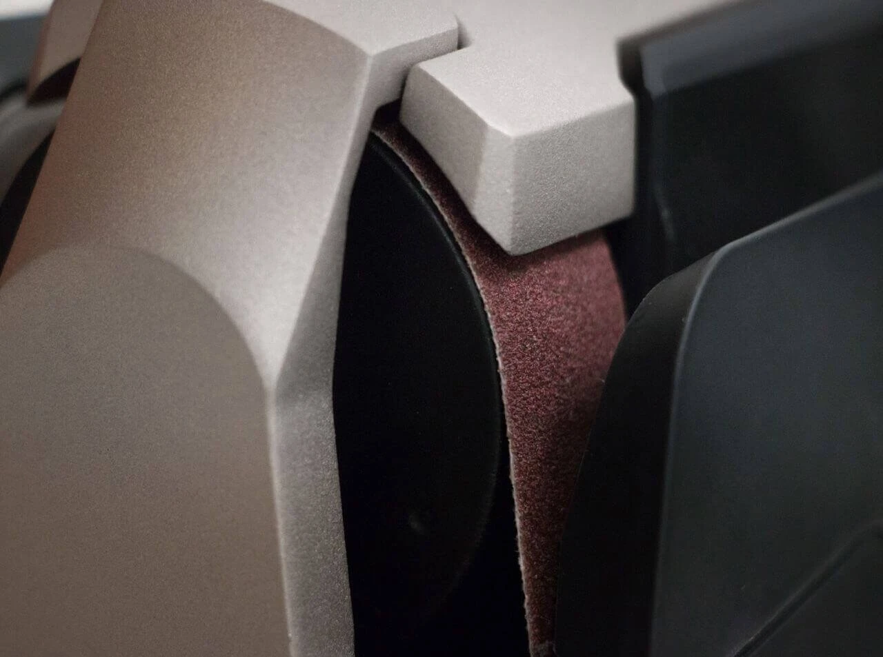 Das Premiummodell verfügt über drei verschiedene Schärfgeschwindigkeiten: Für das Formen einer Schneide, für das Schärfen und für den Feinabzug. Die vollautomatische Timersteuerung sorgt für optimal aufeinander abgestimmte Schärfintervalle. Der zusätzliche Ceramic-Schleifstab mit einer nutzbaren Länge von 20 Zentimetern weist eine grobe und eine feine Schleiffläche sowie einer Winkelführung auf und bietet die Möglichkeit des manuellen Auffrischens der Schärfe zwischendurch. Mit dem zusätzlichen Micro- Forge lässt sich eine glatte Schneide in Sekunden in einen Micro-Wellenschliff verwandeln. 220V Netzanschluss. Lieferung entgegen der Katalogangabe mit zwei Schleifbändern (Medium /P120).