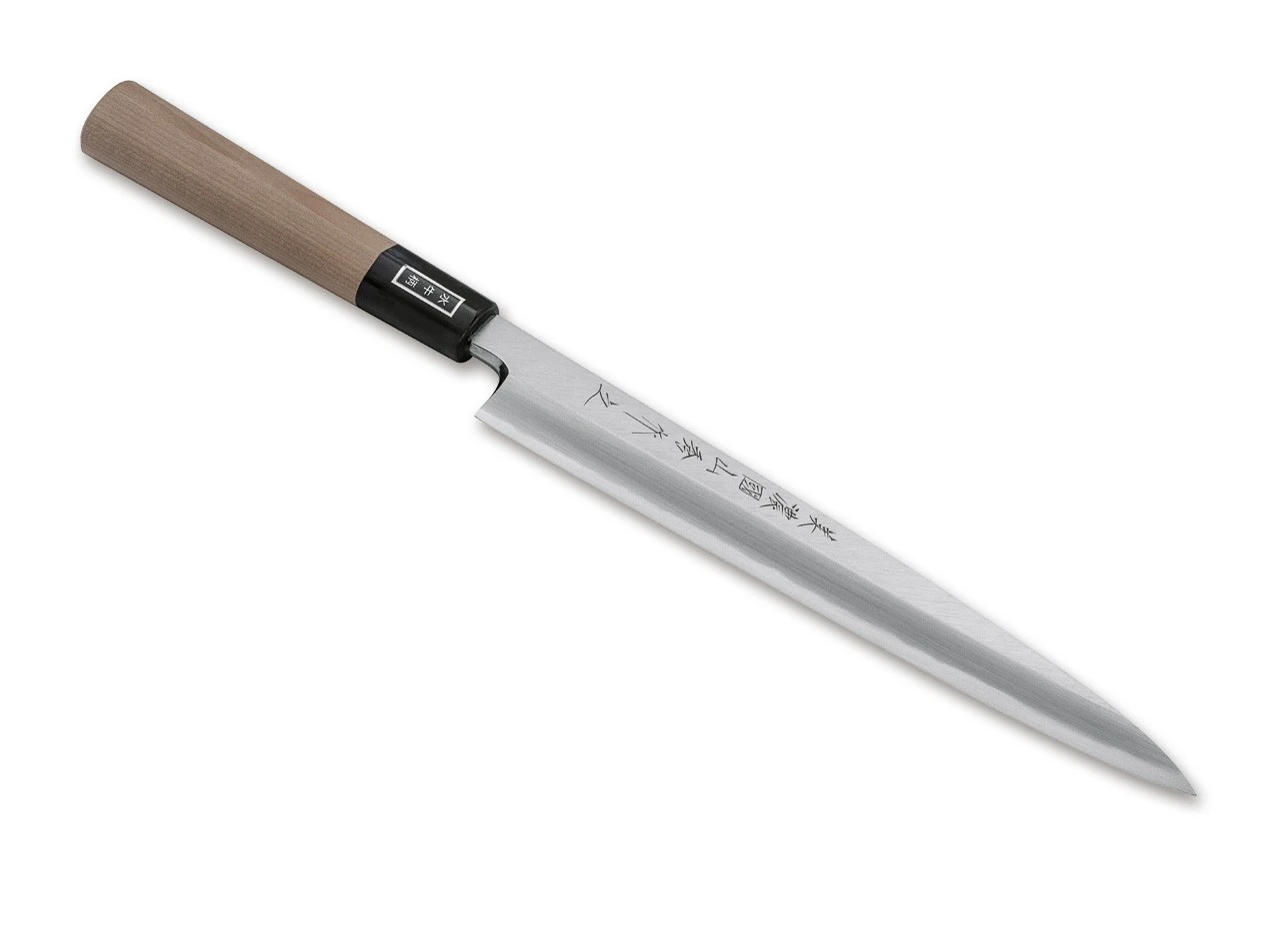 Das Yanagiba ist ideal zum Schneiden von dünnen Scheiben aus Fleisch und Fisch, zum Beispiel geräuchertem Schinken oder Carpaccio. Die lange Klinge ermöglicht Schnitte in einem Zug und gewährleistet ein schönes Ergebnis.